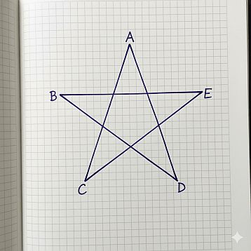 例えば、上のような図形の角A、角B、角C、角D、角Eの総和を求める問題。
