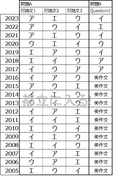 ここ7年間はリスニング5問のうち、4問が四択問題。