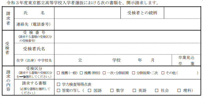 合格者はオンライン申請でなく、開示請求書を直接高校に提出してもいい。
