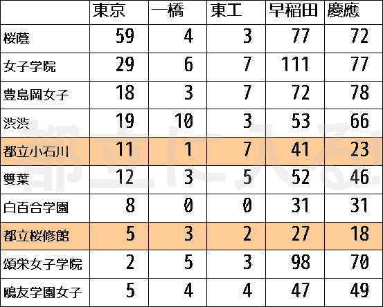 東大合格者数は桜蔭がダントツ。