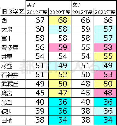 光丘、練馬、田柄の順だったが今じゃ誤差レベル。差はない。
