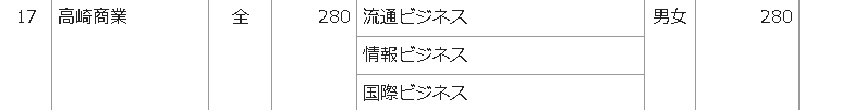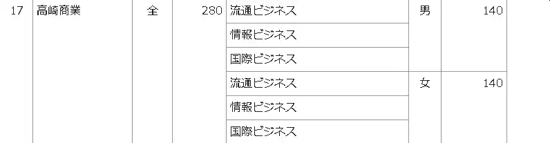 2020年度は他県で唯一、群馬の高崎商業が男女それぞれ140名を募集していたが、2021年度は男女別の定員は廃止している。