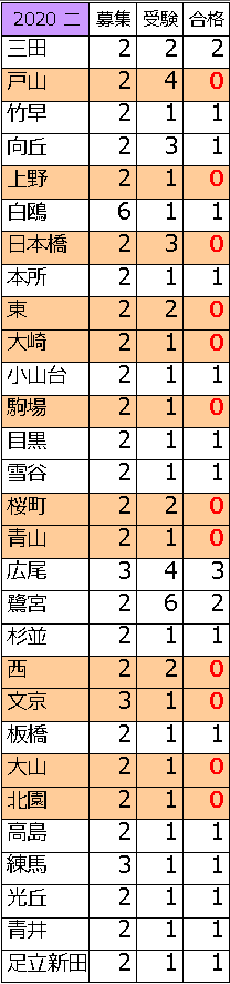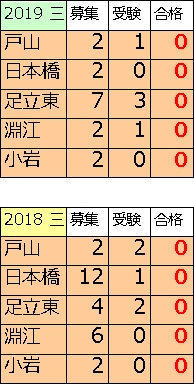 戸山、日本橋、淵江、小岩が全員不合格にしている。