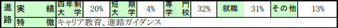 この高校から大学に行きたければ、上位20%には入っておく必要があることが想像できる。就職も31%と多い。